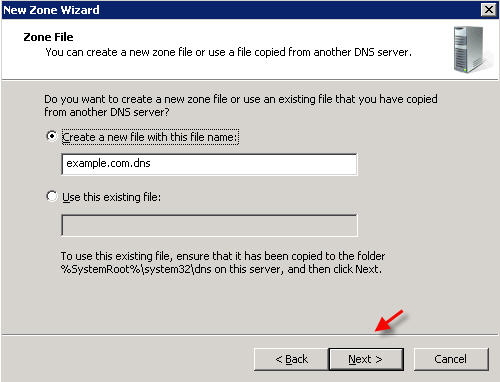 On the next screen, leave the default option selected, This Server maintains the zone, and click NEXT